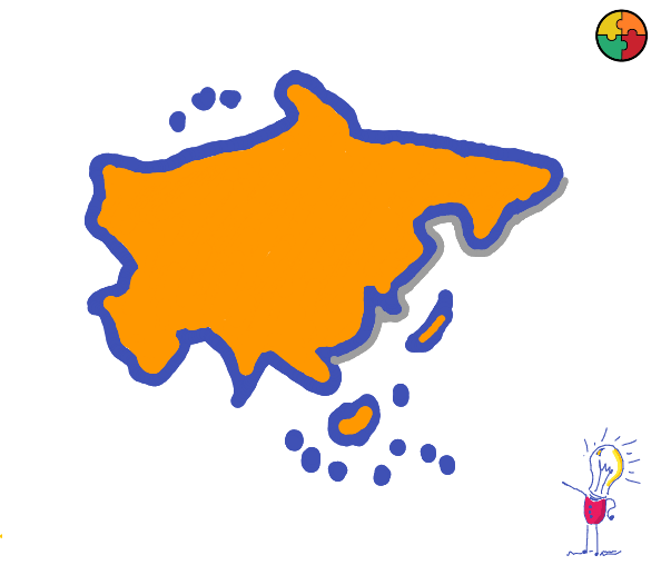 Costas y mares (25): golfo de Bengala, golfo de Omán, golfo de Siam, golfo Pérsico, isla de Borneo, isla de Célebes, isla de Java, isla de Sri Lanka, isla de Sumatra, isla de Taiwan, isla de Timor, isla Honshu, islas Filipinas, mar Amarillo, mar Arábigo, mar de Bering, mar de Ojotsk, mar Rojo, península Arábiga, península de Anatolia, península de Corea, península de Indochina, península de Indostán, península de Kamchatka, península de Malaca. (Unidad en español y en inglés).