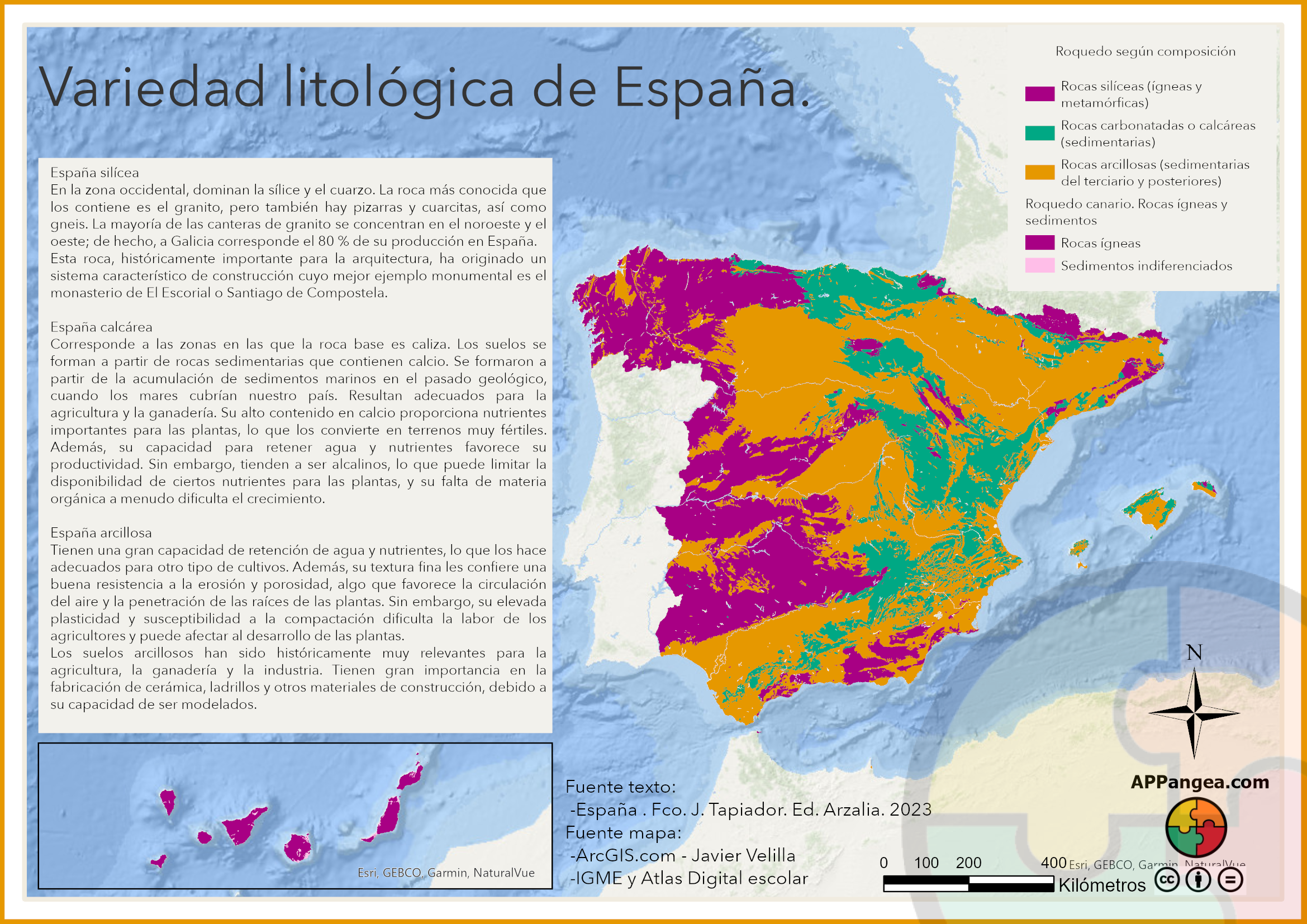 Mapa Variedad litológica de España para hacer esta actividad (Bachillerato):