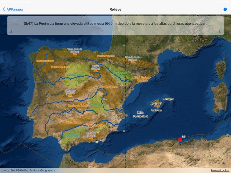 APPangea no es solo un juego, es una manera de aprender Geografía con contenidos adaptados para Primaria y Secundaria. Con el modo Descubre del Relieve de España el alumno y el profesor tienen una vista general de las formas del relieve y su entorno.