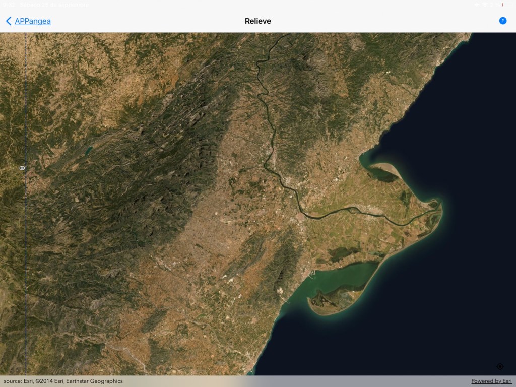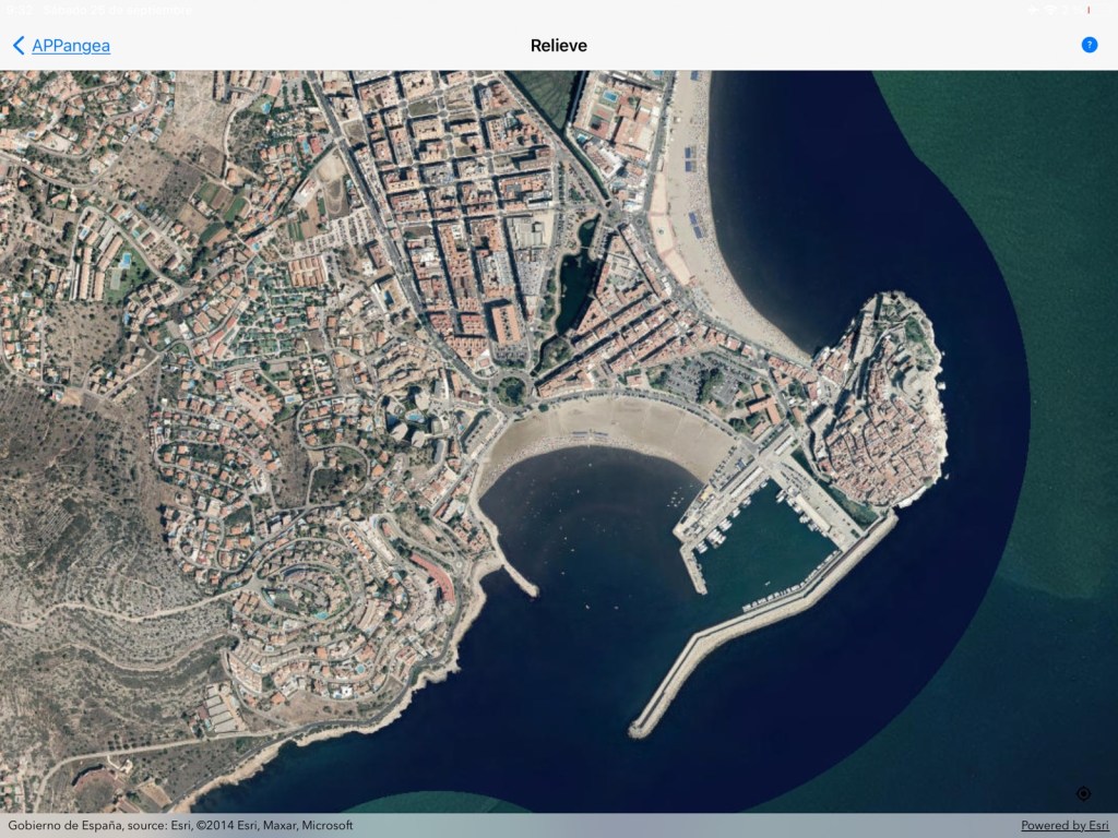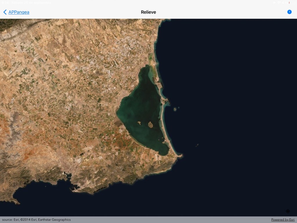 A continuación ponemos varios accidentes geográficos que se identifican desde la imagen de satélite del modo Descubre de APPangea. Nosotros hemos hecho una captura de ese modo directamente. También se pueden responder desde el modo Descubre de Costas de España; en ese modo la imagen es un mapa base vectorial (político).