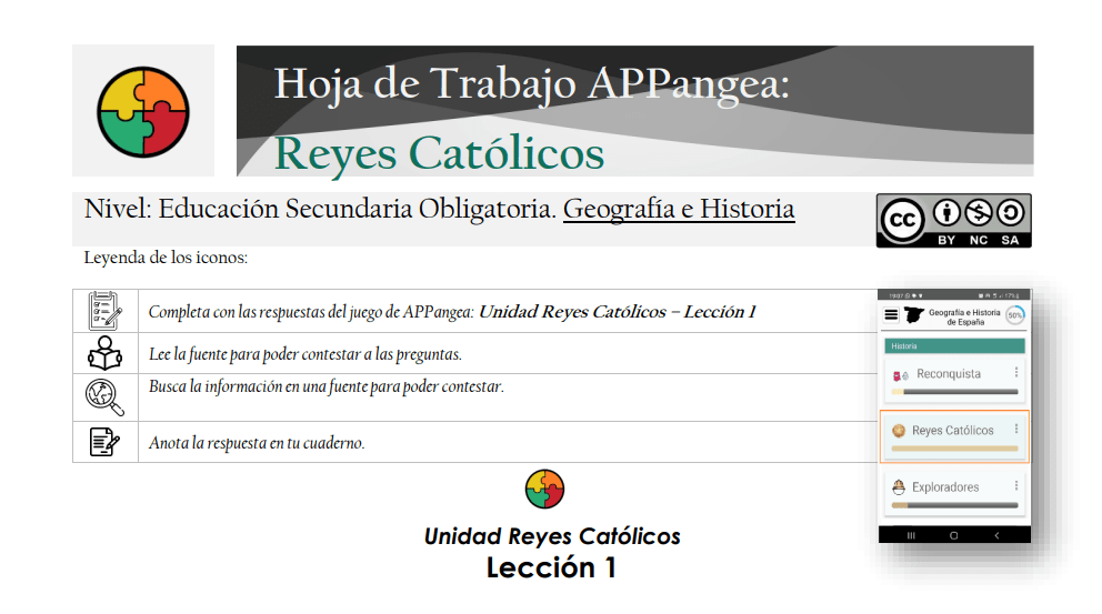 La hoja de trabajo APPangea es una actividad dirigida que tiene como objetivo que el alumnado profundice en los contenidos de cada una de las lecciones de la unidad de Reyes Católicos.