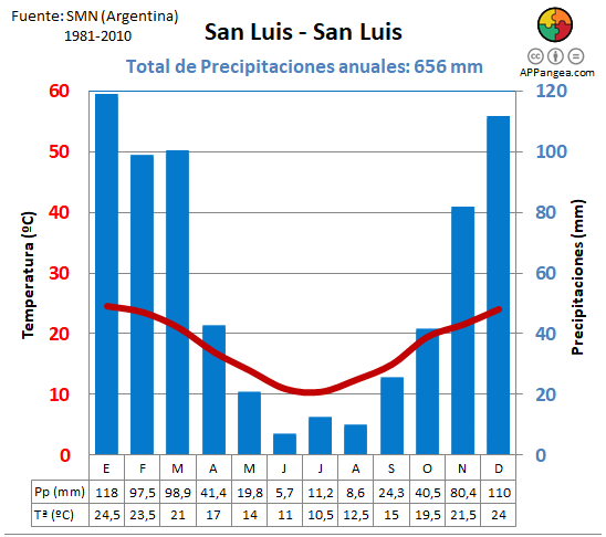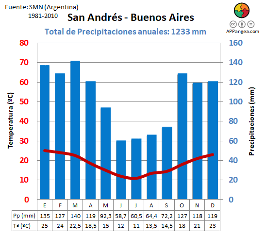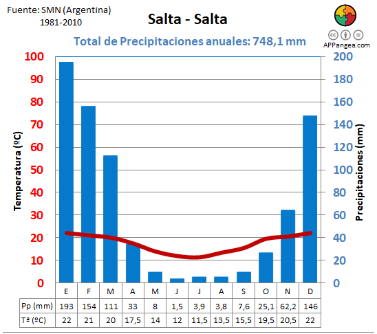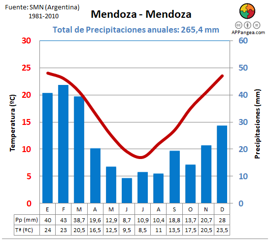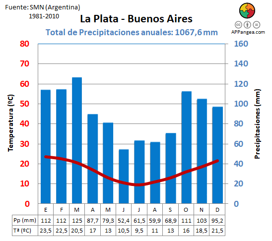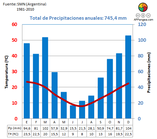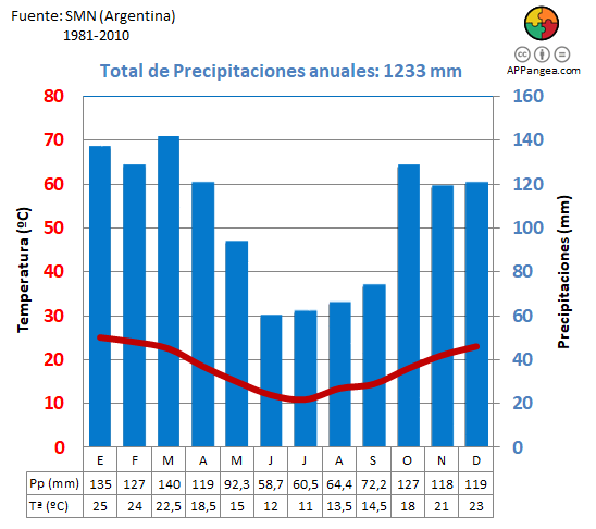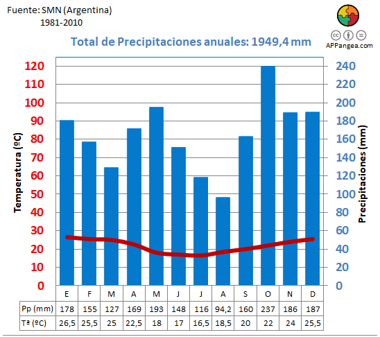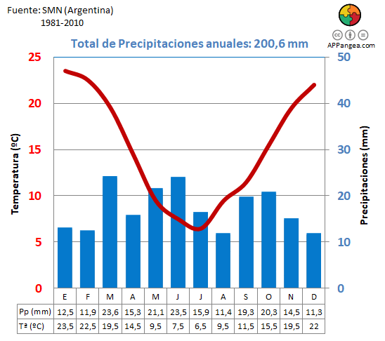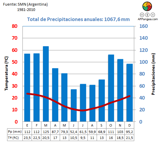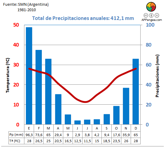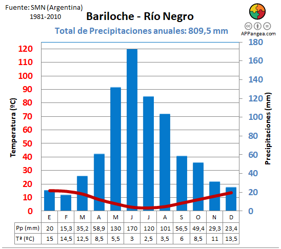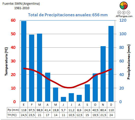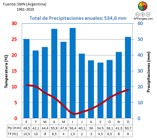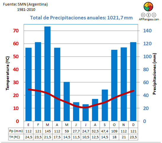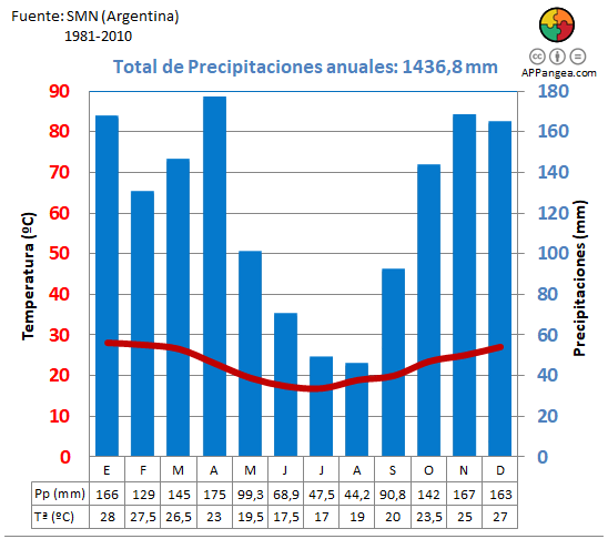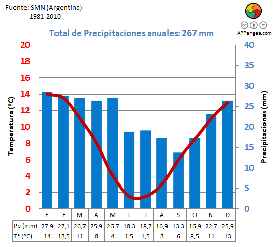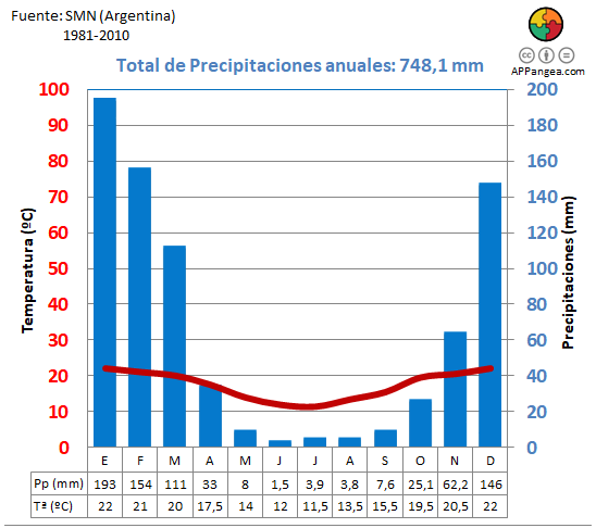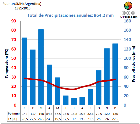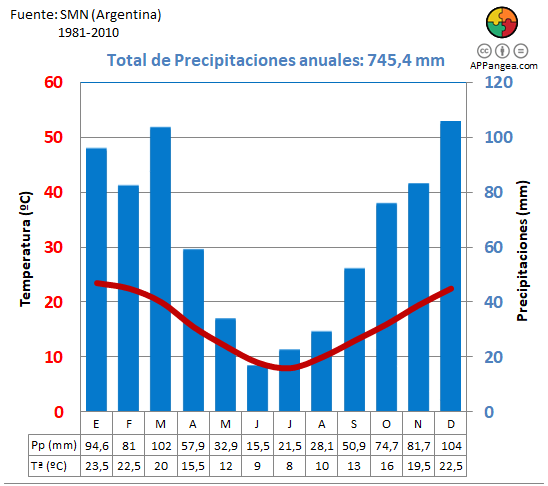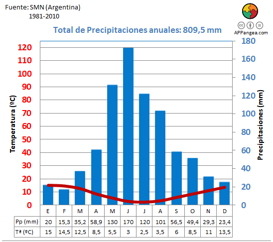 En esta entrada se comparte con licencia creative commons 17 climogramas de Argentina que cubren la mayoría de sus zonas climáticas.
