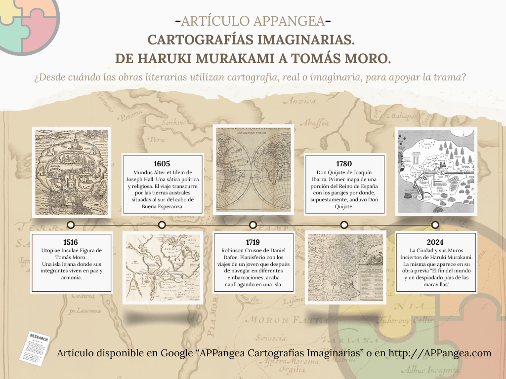 Roger Chartier, en Cartografías imaginarias (ss. XVI-XVIII), hace un estudio minucioso y demuestra que desde hace siglos los autores han utilizado mapas para ilustrar sus historias. Sin embargo, no siempre esos mapas eran representaciones de un mundo totalmente irreal, como ocurre en las obras de Murakami y Tolkien, sino que utilizaban lugares reales para apoyar lo imaginado en su relato. La idea es: lo irreal deja de serlo al suceder en un espacio conocido.