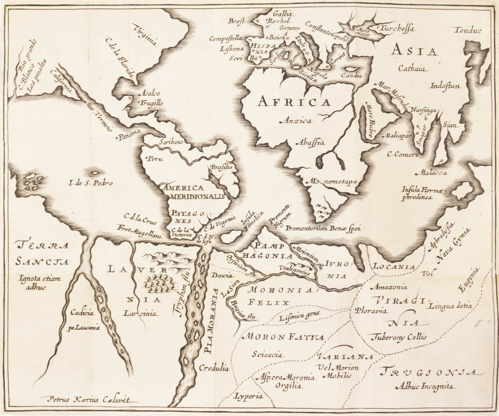 Abandonando el mundo de los relatos de viajes, y adentrándonos en el de las distopias tratado por Mundus Alter et Idem, encontramos también la Utopía de Tomás Moro de 1516, una referencia entre las creaciones del siglo XVI. El fantástico escenario descrito por el humanista muestra una isla lejana donde la sociedad se ha perfeccionado hasta tal punto que todos sus integrantes viven en paz y armonía. Utopía, cuyo significado es el no lugar, es cartografiada según las convenciones de la época, para invitar al lector a creer en la existencia real del país de los utopianos.