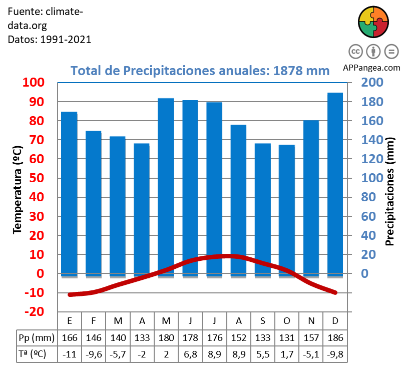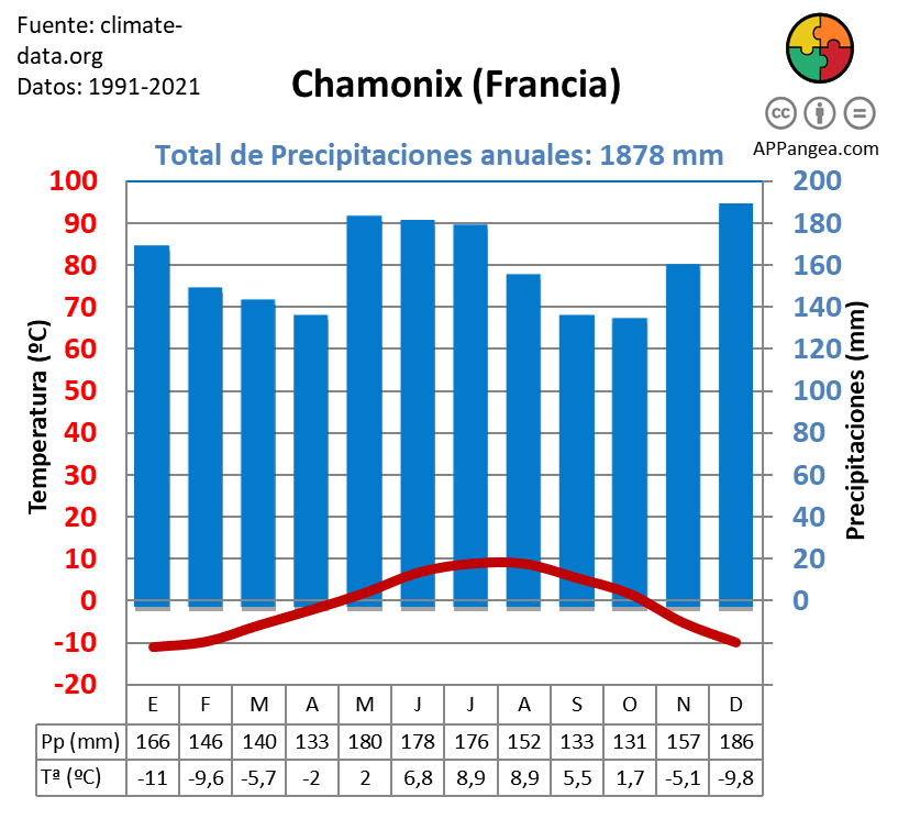 Climograma de Chamonix – Mont Blanc (Francia) mudo.