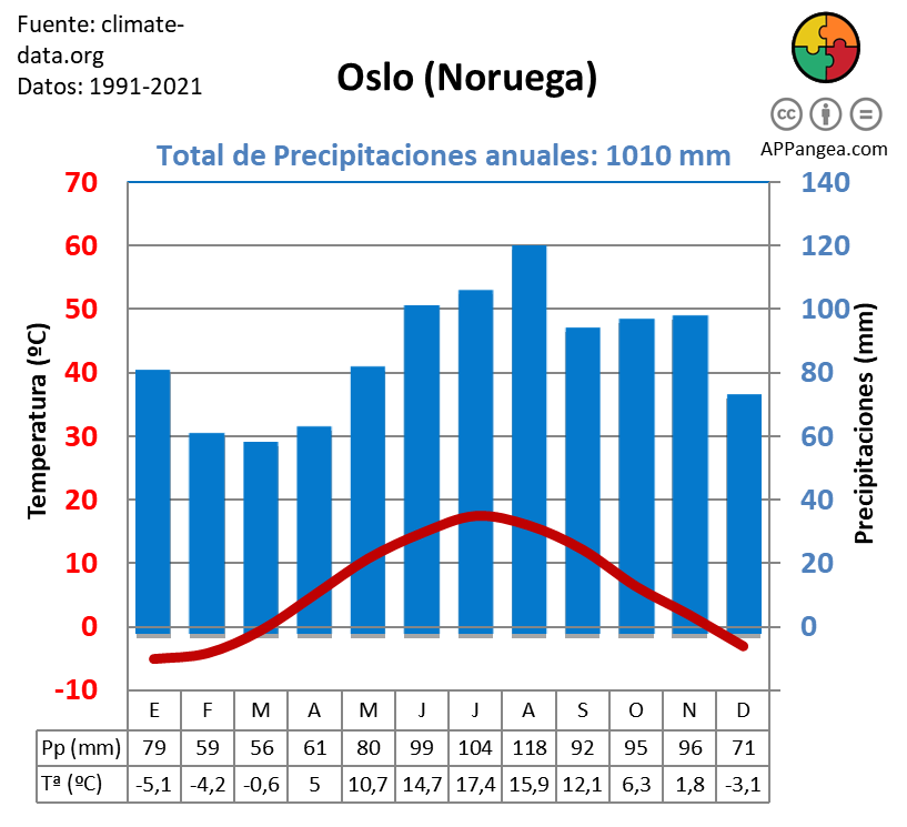 En esta entrada se comparte con licencia creative commons 17 climogramas de Europa que cubren la mayoría de sus zonas climáticas.