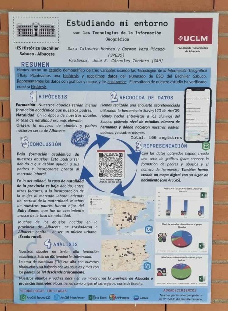 1er Premio en el V Concurso de póster científico en Humanidades para IES (2022-23). Facultad de Humanidades de Albacete. UCLM. Abril, 2023. Desde el año 2018 la Facultad de Humanidades de Albacete convoca el Concurso de Póster Científico en Humanidades para IES. Esta actividad ha permitido fomentar la comunicación entre la Educación Secundaria y la Superior, algo en lo que la Facultad de Humanidades viene trabajando con especial interés.