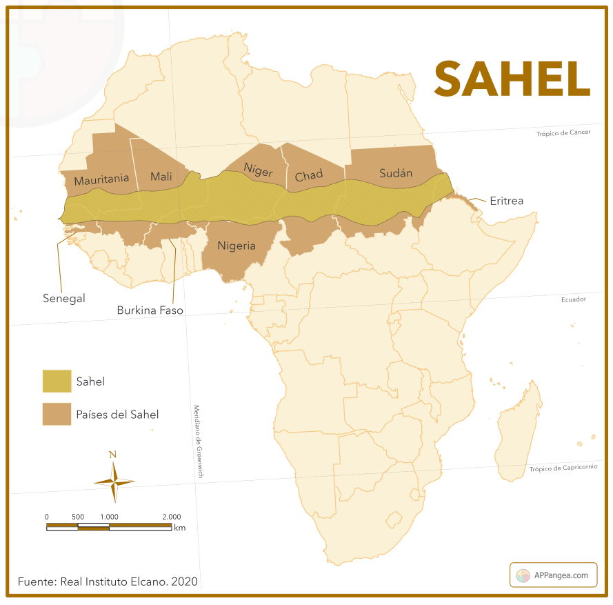 Material para Geografía e Historia 1º Bachillerato El Sahel es una extensa franja de África que se extiende de oeste a este, justo al sur del desierto del Sáhara. Su nombre proviene del árabe sāḥil, que significa “borde” o “frontera”, ya que actúa como zona de transición entre el desierto y las regiones más húmedasSigue leyendo «Mapa Países del Sahel»